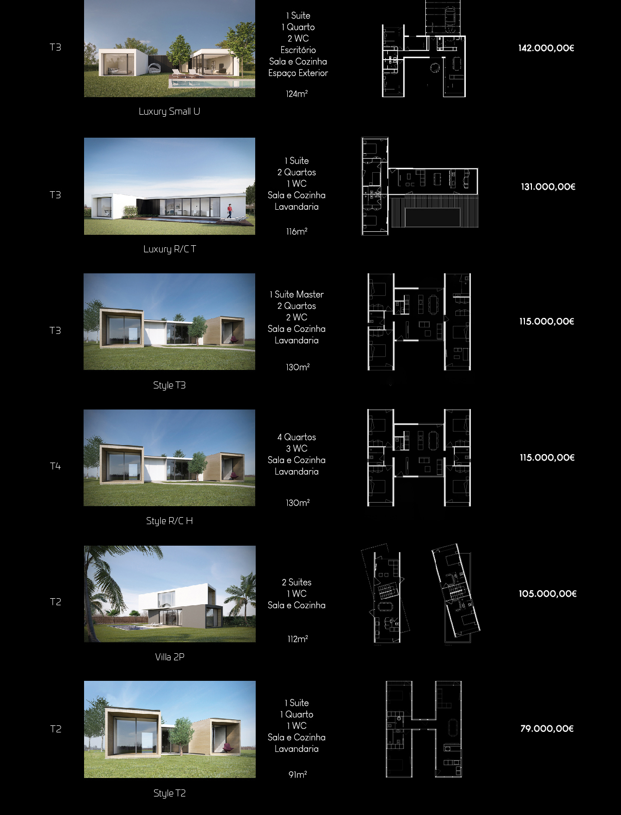 Not included: VAT, council taxes, swimming pool, garage, transport and crane for assembly, preparation of foundations on the ground, concrete base, household appliances and connection to public networks: electricity, water and sanitation.